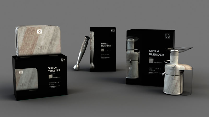 Creació d'una marca i disseny de l'embalatge i de 3 gammes diferents, amb la seva posterior presentació comercial, de diferents electrodomèstics de cuina.