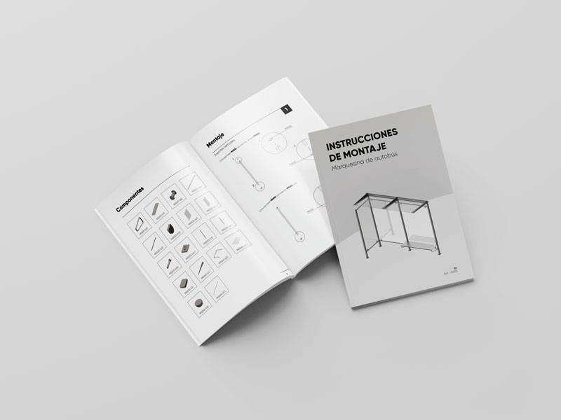 Disseny d'una parada d'autobús i del llibre de les seves instruccions de muntatge. És una marquesina dissenyada per a ser efectiva, senzilla i de fàcil muntatge.